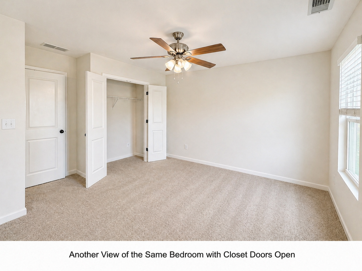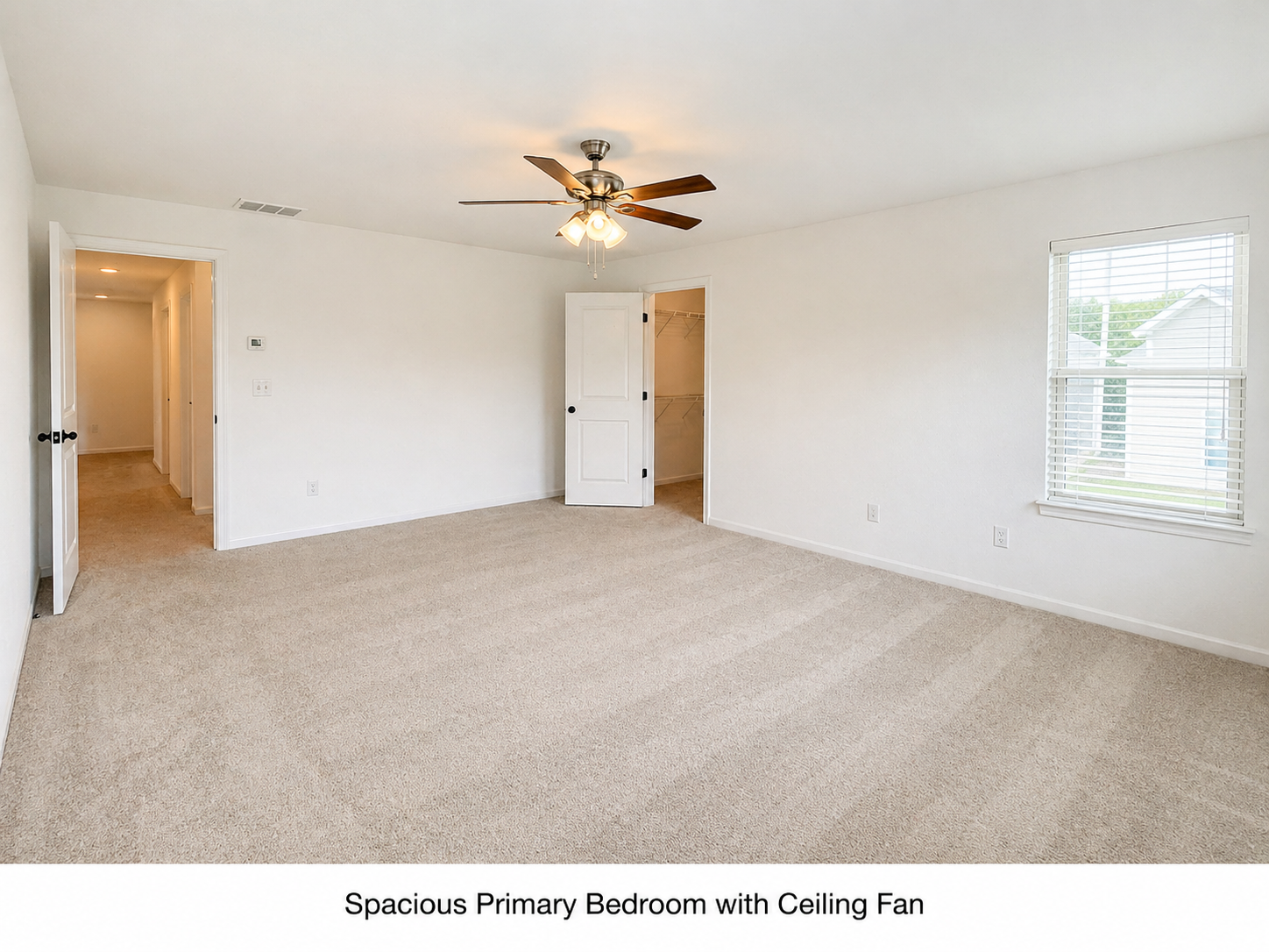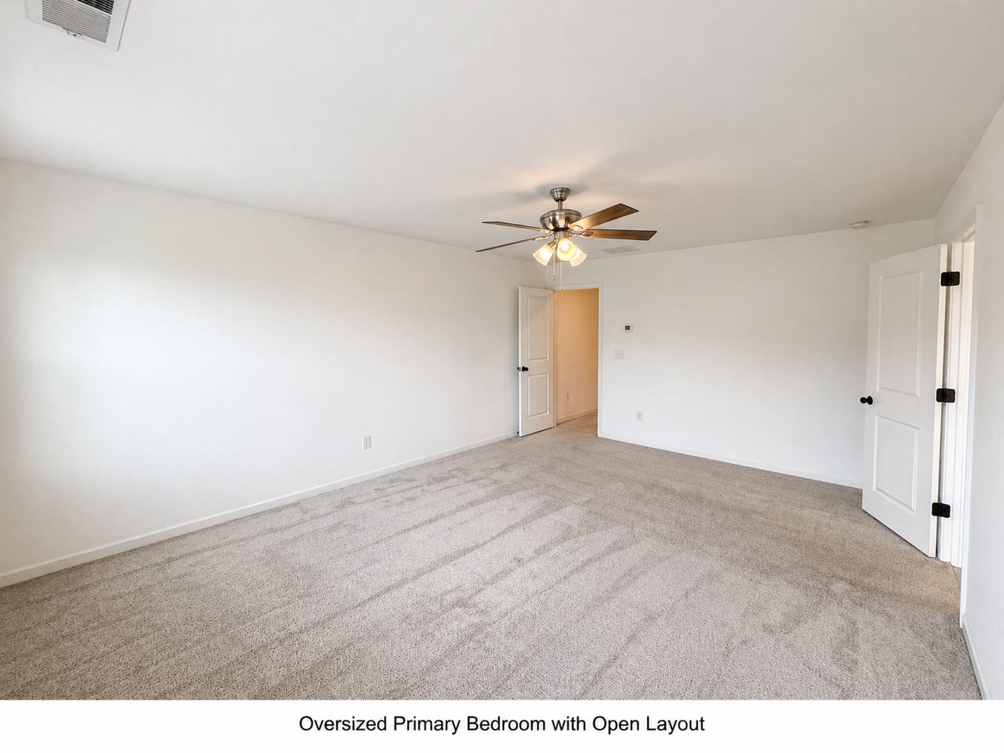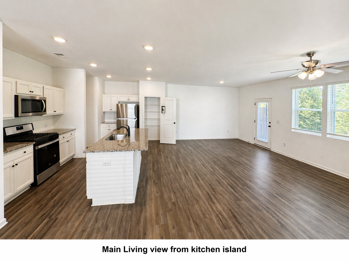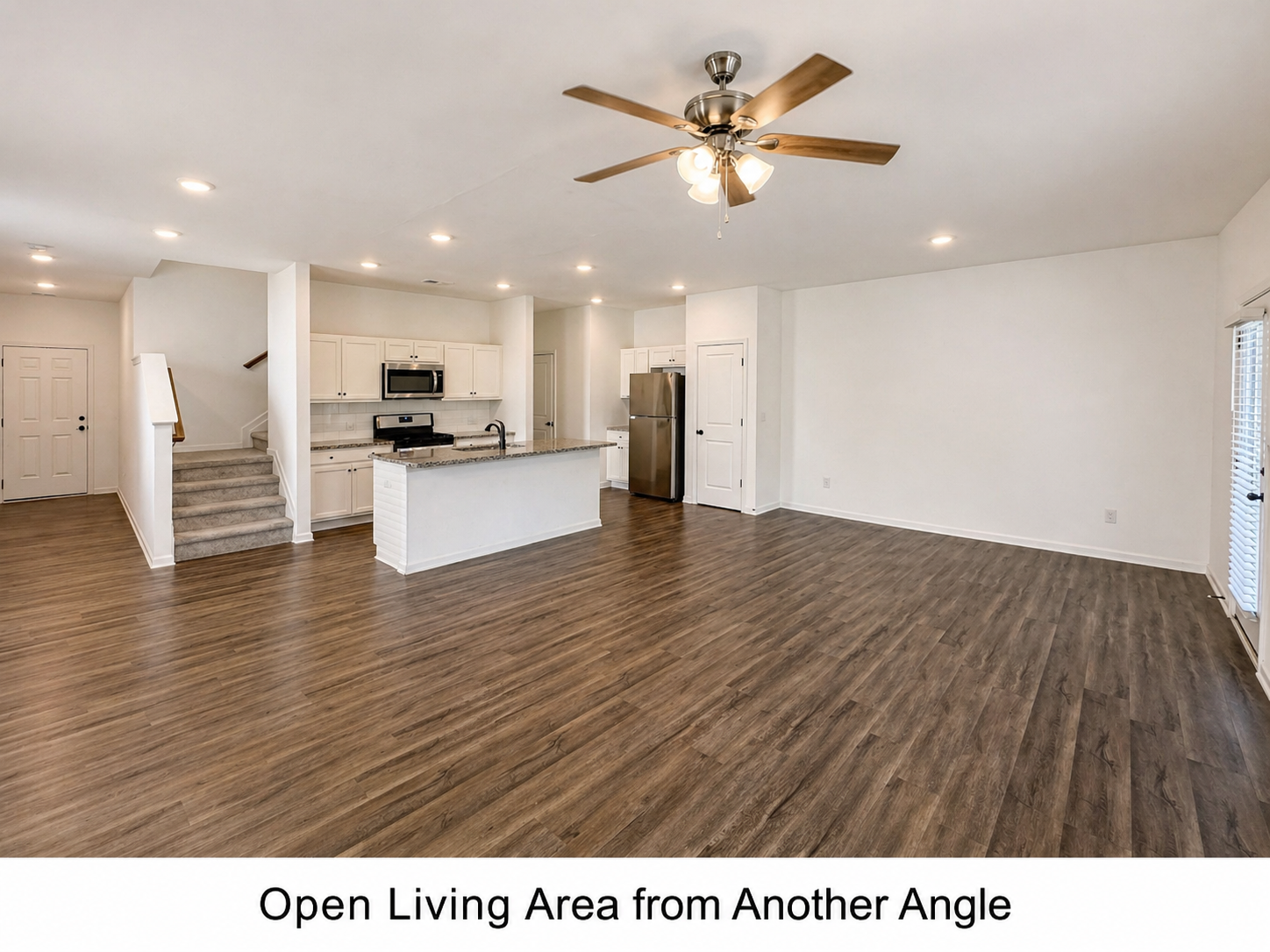 The main level also includes laminate flooring, a convenient half bath, and access to a private rear patio for easy outdoor relaxing. Upstairs, the oversized primary suite features a large walk-in closet and double vanity bath. Two additional bedrooms, a full shared bathroom, a loft/bonus area, and a dedicated laundry room with washer and dryer included complete the second floor.